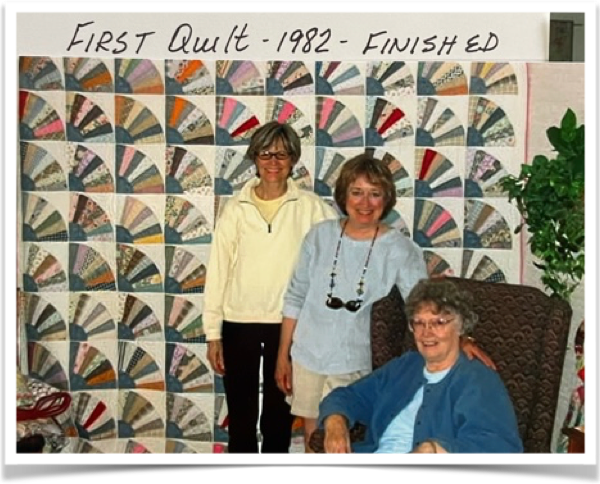 First quilt started in 1982 and finished 2005. Three members were there from the start to the finish. Left to Right: Cheryl Little, Linda Dixon, and Jacque Riddlemoser.