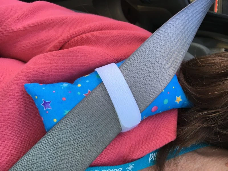 You know how irritating it can be when the seatbelt rubs against your neck and chest? Imagine what it is like with a surgically inserted port in the chest for the infusion of medicine for cancer patients? This little pillow attaches to the seat belt of the car to protect that area. It is a simple sewing task with great results. It can be moved to the driver’s side or passenger’s side with little effort.