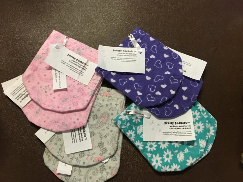 Pretty Pockets were designed for mastectomy patients to hold the drain tubes so the tubes won’t pull on their incisions. They are made from flannel. To learn more about this organization, visit their website www.creativeblossoms.com.