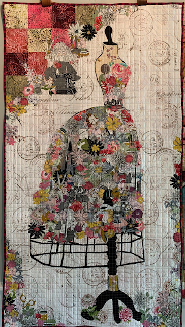 My collage quilts include using fusible (Laura Heine), using just fabric and glue (Susan Carlson), blending these two artists (Emily Taylor), and then taking some of each of these women to create my own process.