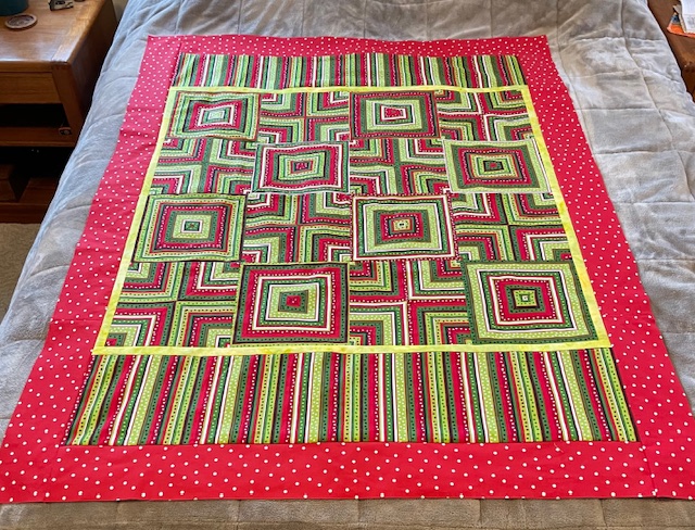 The body of this quilt finishes about 36” plus the width of any border you want to add. Double the amount of fabric if you want a larger quilt