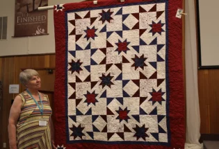 Nancy England made this Quilt of Valor called "Star Shuffle" from a pattern in the July/August 2018 McCall magazine.