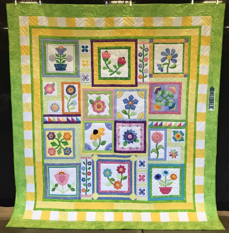 HONORABLE MENTION- Workmanship (by one or more)-My Happy and Bright Stitcher_s Garden- Jane Sparrell-Quilted By Virginia Gross2