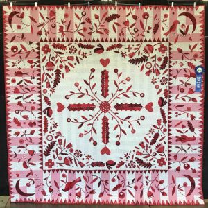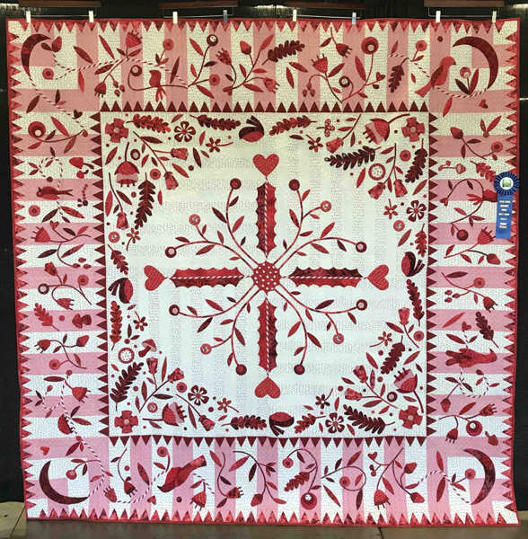 FIRST PLACE- Mixed Technique by Two or More Large-Growing Wild Gone Red _ White- Cheryl Little-Quilted By Jami Herndon