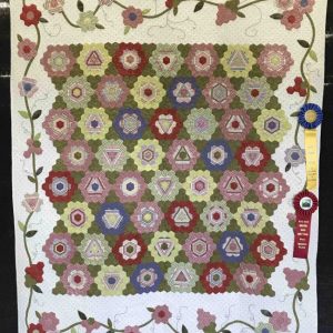 SECOND PLACE- Mixed Technique by Two or More Large-NACQJ Special Award-On the Road with Hexies- Dixie Johnson-Quilted By Jami Herndon