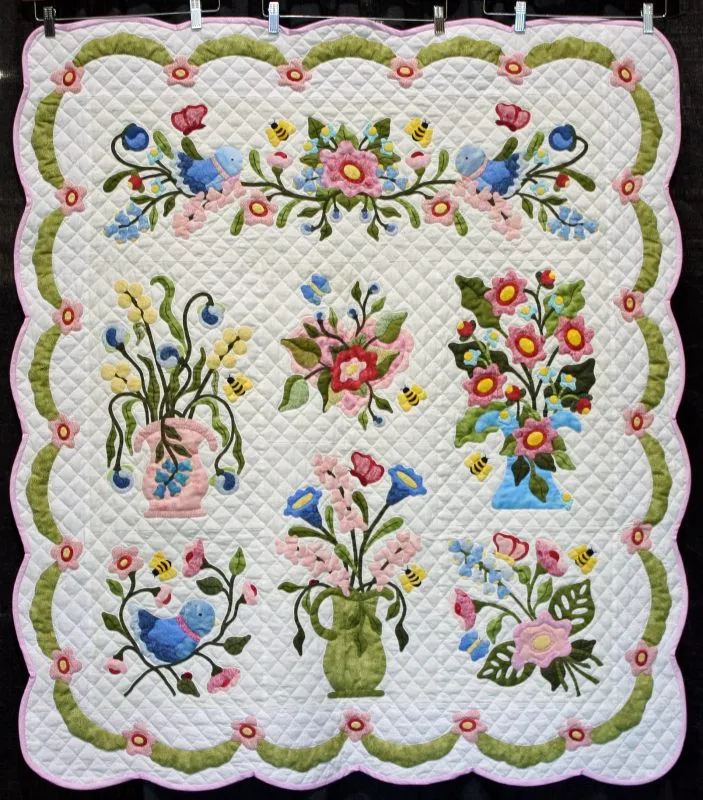 Best Machine Quilting on a Stationary Machine and 1st Place - Applique by 1; made and quilted by Joann Hopkins