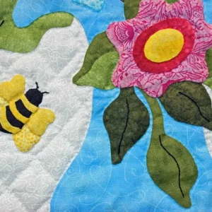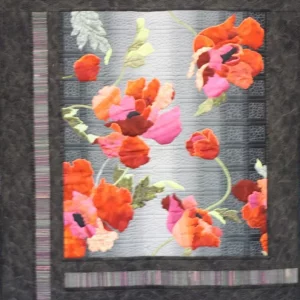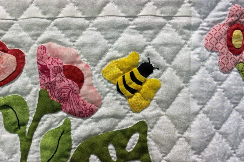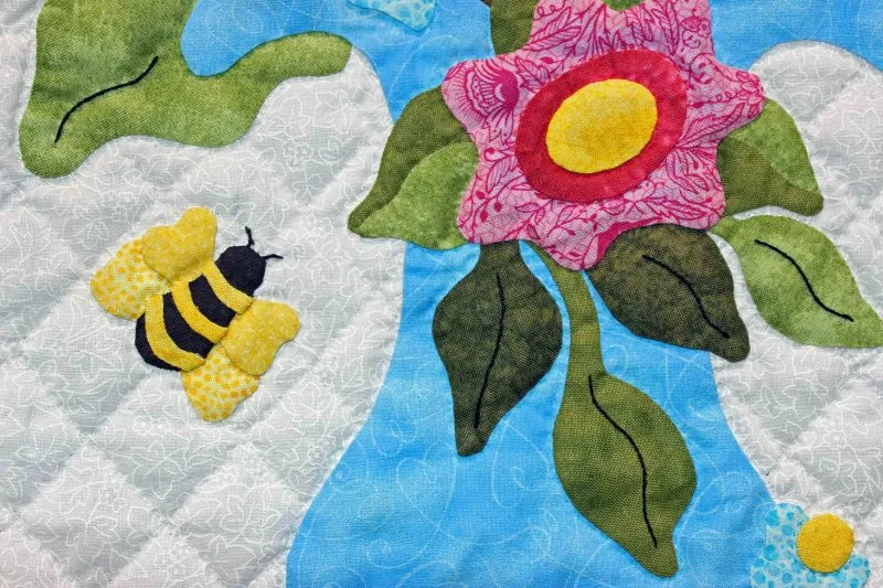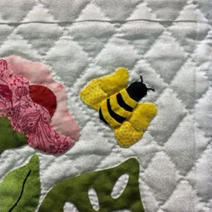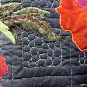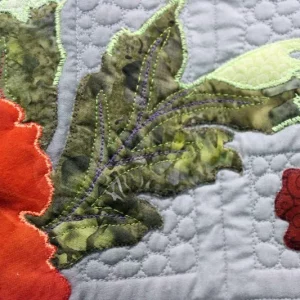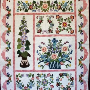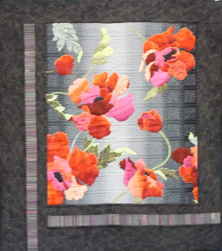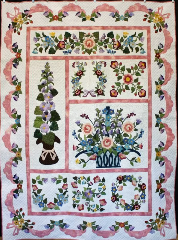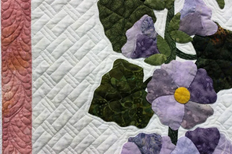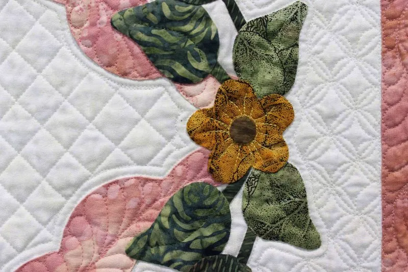 "Forever Blooming" close-up; pieced, appliqued, and stationary machine quilted by Joann Hopkins. 1st Place Applique by One. Best Machine Quilting - Mary Lou Queen Award