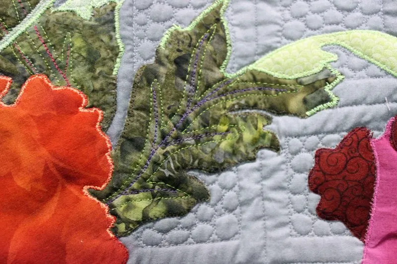 "Luminous Garden" close-up; pieced, appliqued, and stationary machine quilted by Kathy Irwin. 3rd Place Applique by One.