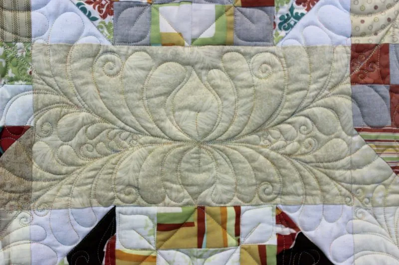 "Homeward Journey" close-up; pieced and track machine quilted by Cynthia Fuelling. 1st Place Large Pieced by One.