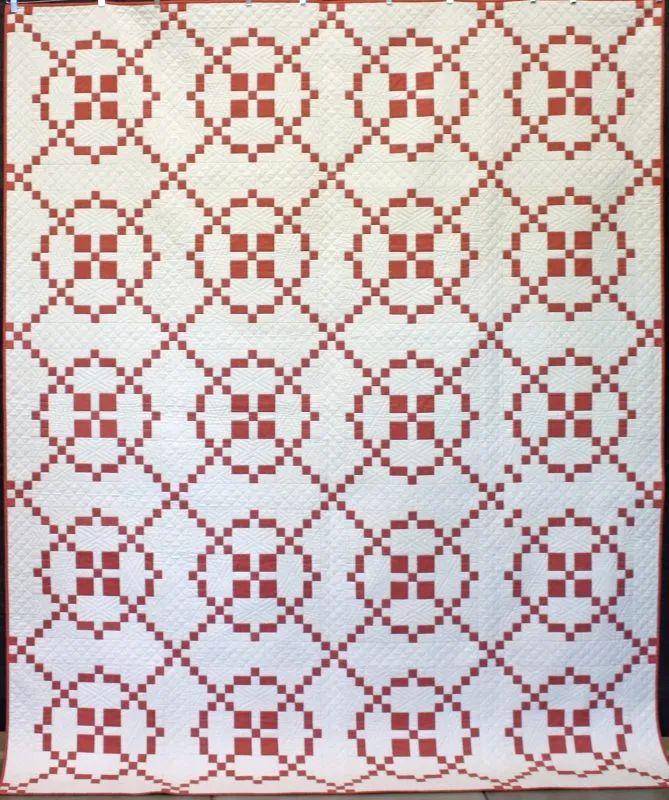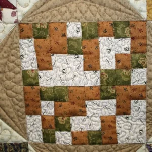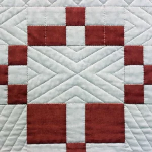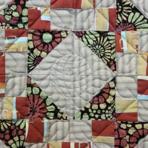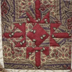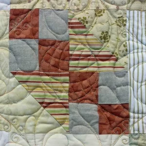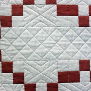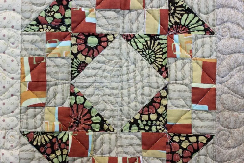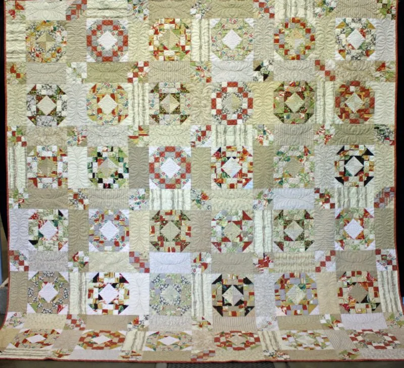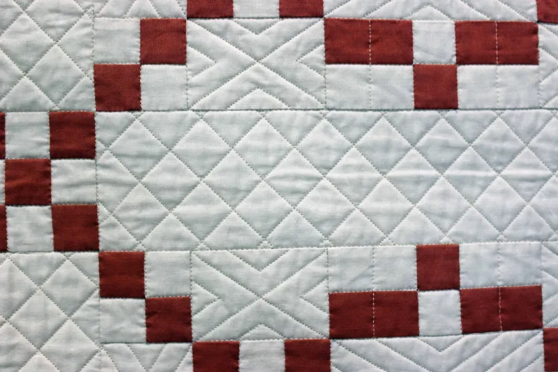 "Homespun 1985/2018 " Close-up; pieced by Cheryl Little; stationary machine quilted by Kathy Quinn. 1st Place Large Pieced by Two or More.