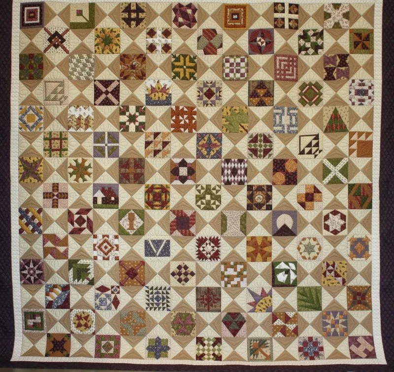 3rd Place - Large Pieced by 2 or more; "JoAnn's Sampler" by Janis Harrold and track machine quilted by Stephanie Collins