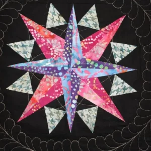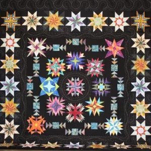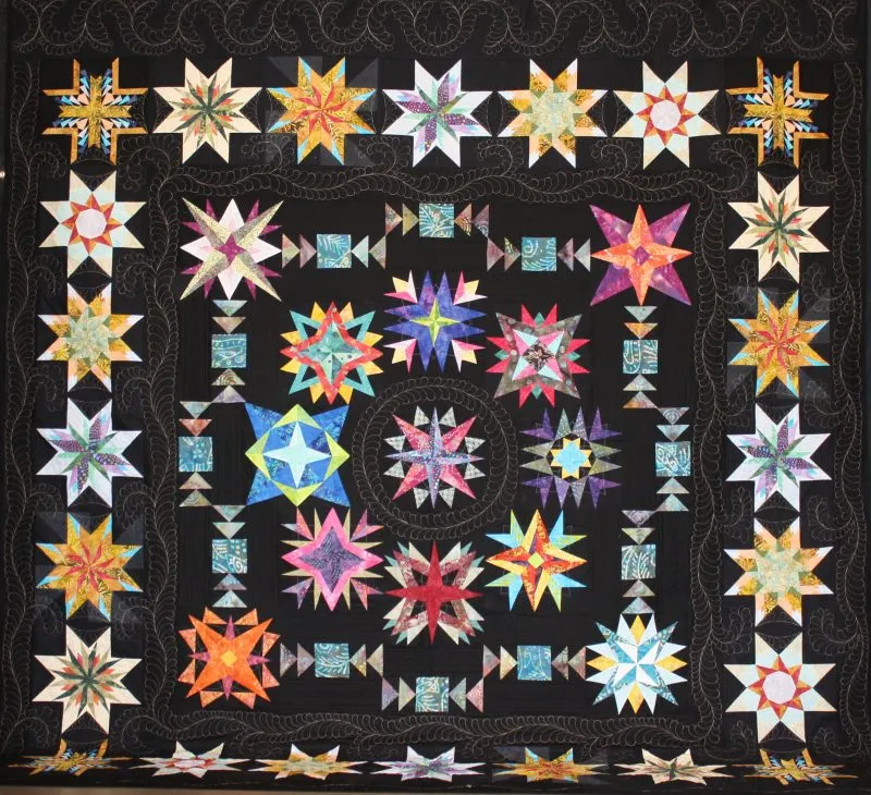 2nd Place - Large Pieced by 2 or more; "State & Country Stars" by sandy Wyngaard, track machine quilted by Ellen Youngling.