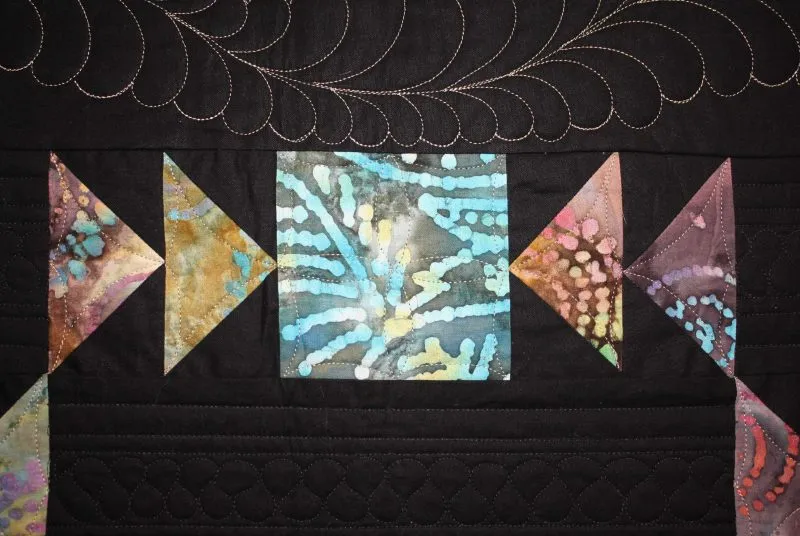"Homeward Journey" close-up; pieced and track machine quilted by Cynthia Fuelling. 1st Place Large Pieced by One.