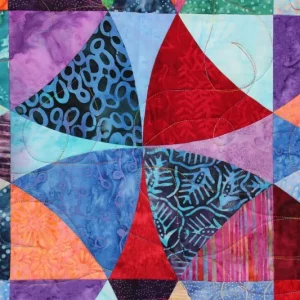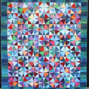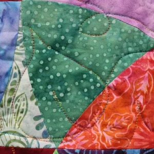 "Wheel of Mystery Rainbow" close-up; pieced and machine track quilted by Carol Johnston. 3rd Place in Large Pieced by One.