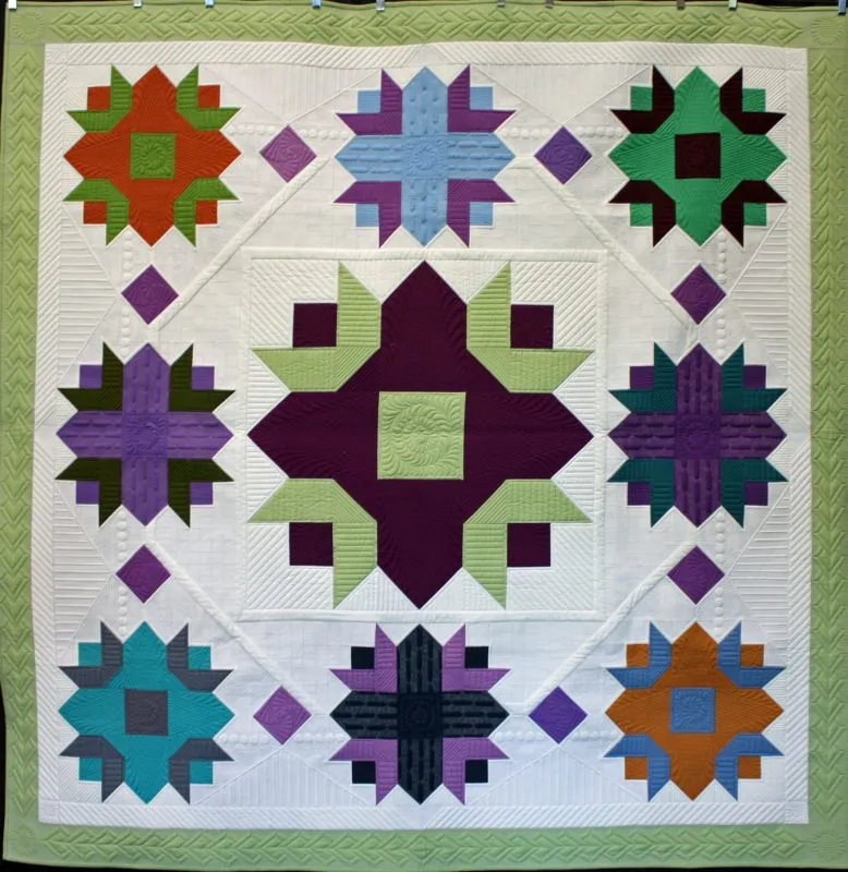 "Jane Come of Age" close-up; pieced and track machine quilted by Cynthia Fuelling. 2nd Place Medium Pieced by One.