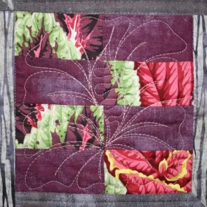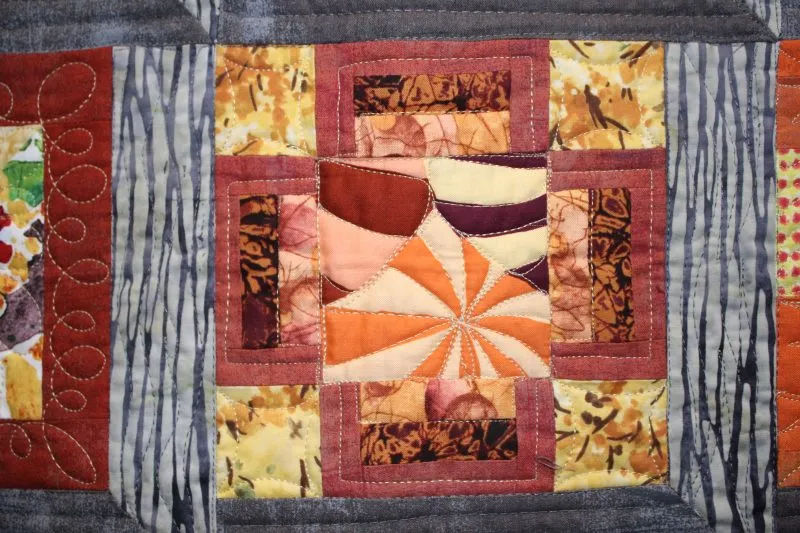 "100 Blocks in 100 Days" close-up; pieced by Patty Henry; track machine quilted by Yvette Ebaugh. 3rd Place Medium Pieced by Two or More.