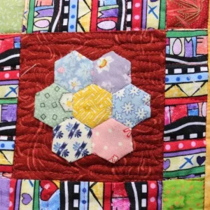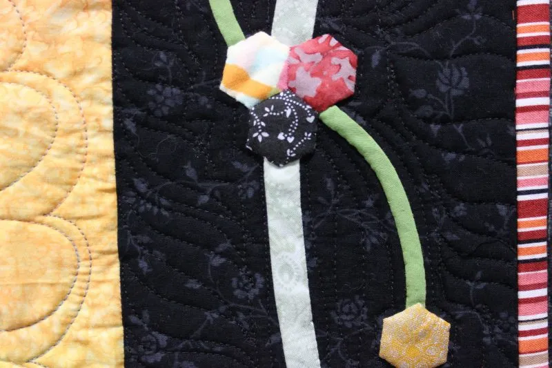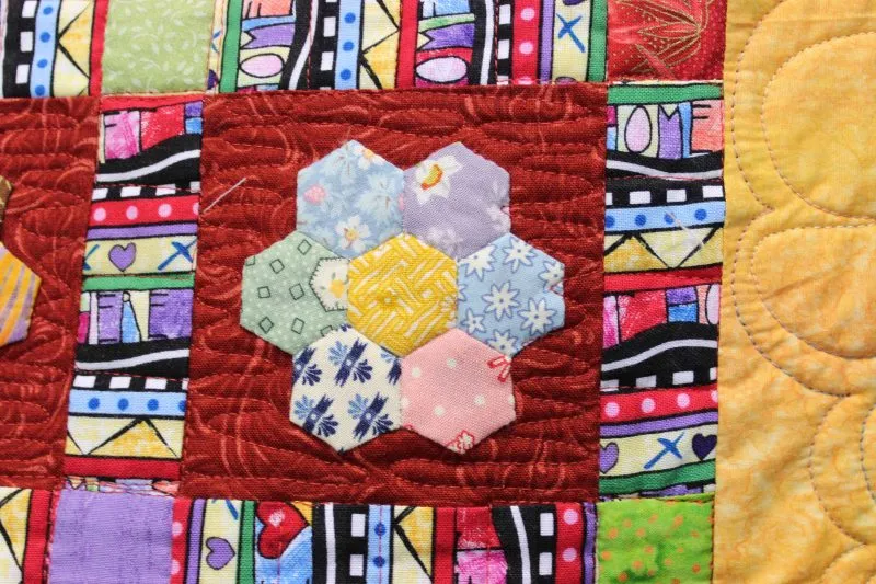 "Crazy Hexagon Quilt" close-up; pieced by Debi Reininger; track machine quilted by Teresa Church. Medium Pieced by Two or More. Judge's Choice - Andi