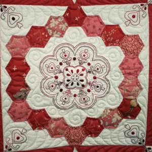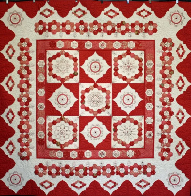 "Celestial Dahlia" close-up; pieced by Norma Tarter; track machine quilted by Nancy Strickland. 2nd Place Mixed Technique by Two or More