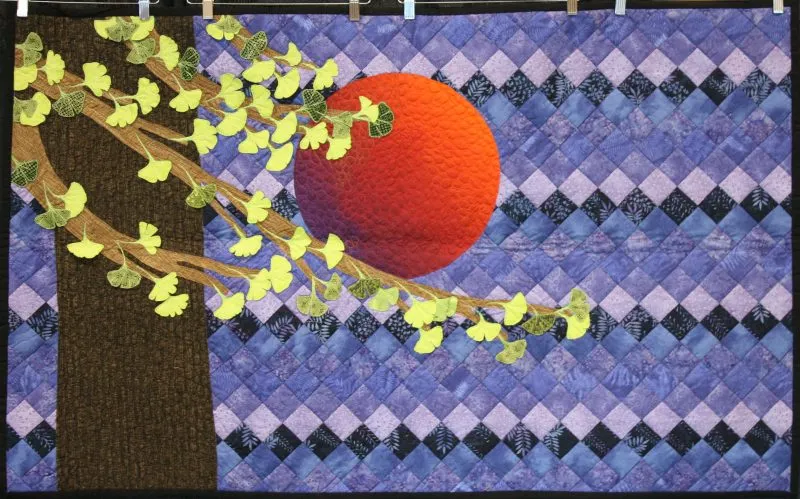 3rd Place - Mixed Technique; "Ginko Moon" by Bonnie Welte, quilted on her domestic, stationary machine