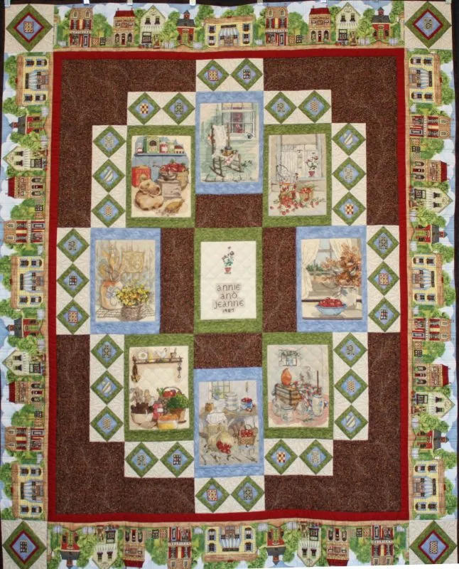 3rd Place - Mixed Technique by 2 or more; "Quilter's Village" by Ann Davis, quilted on a track machine.