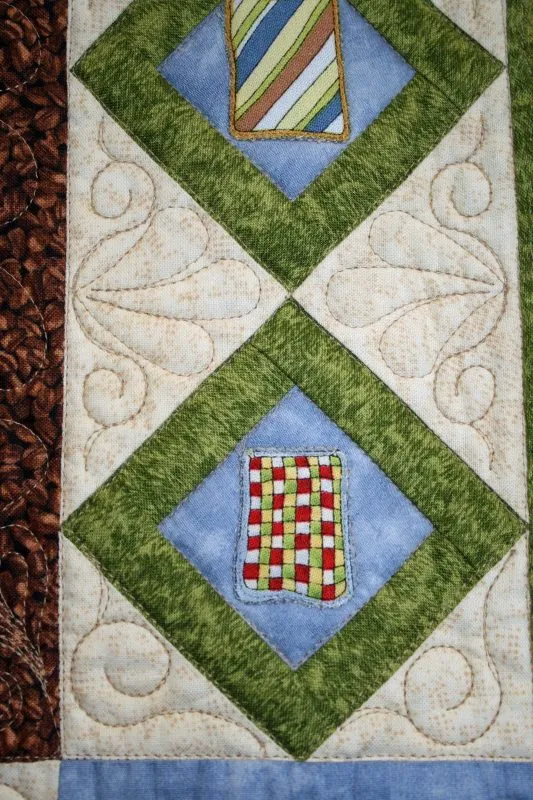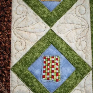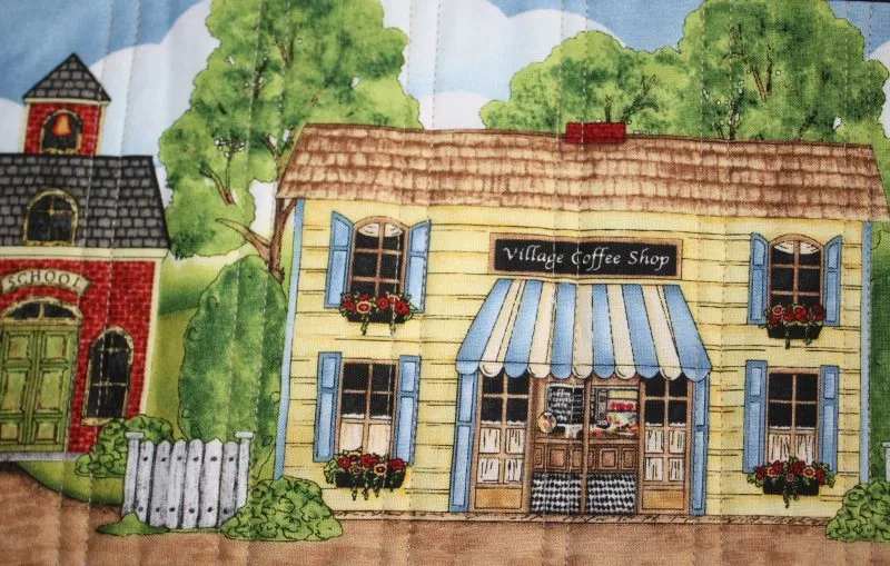 "Quilters Village" close-up; pieced by Ann Davis; track machine quilted by Karen Hanson Quilt Expressions. 3rd Place Mixed Technique by Two or More.