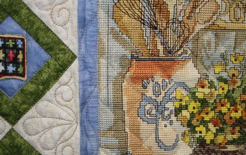 2nd Place - Mixed Technique; "Julie in the Garden" by Gay Elliott, quilted on her domestic, stationary machine.