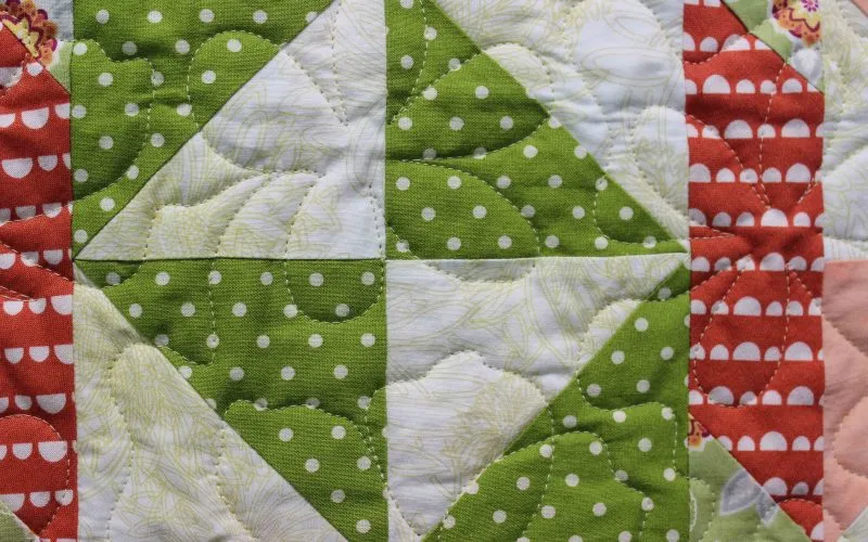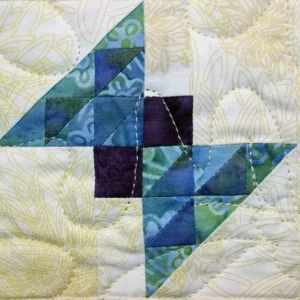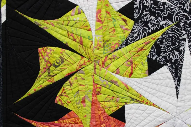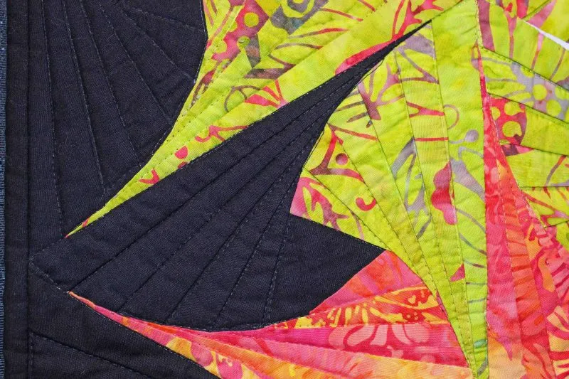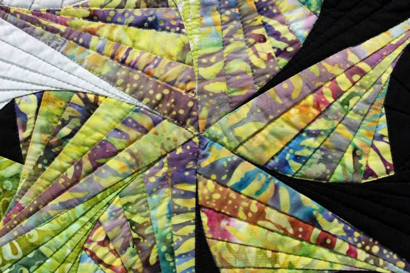 "Twist 'n Shout" close-up; pieced and stationary machine quilted by Sharon Beidler. 3rd place in Small Pieced by One.