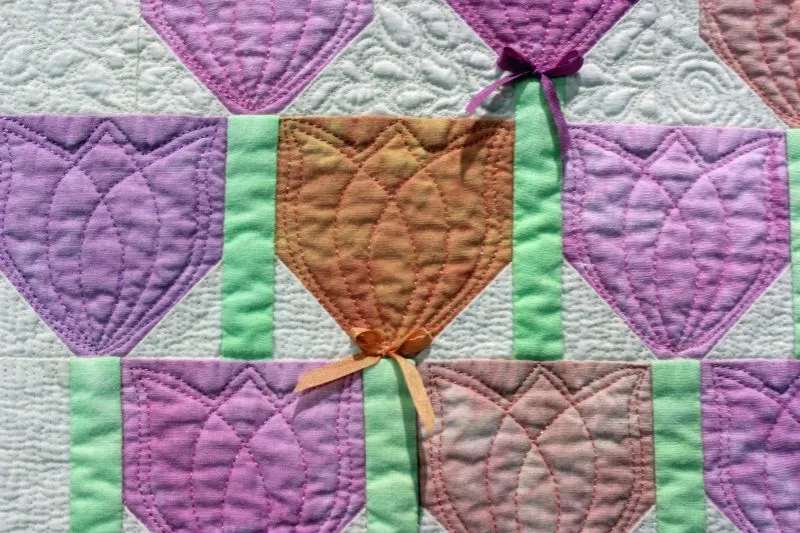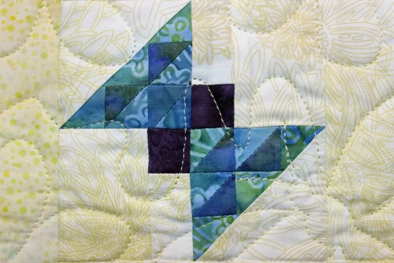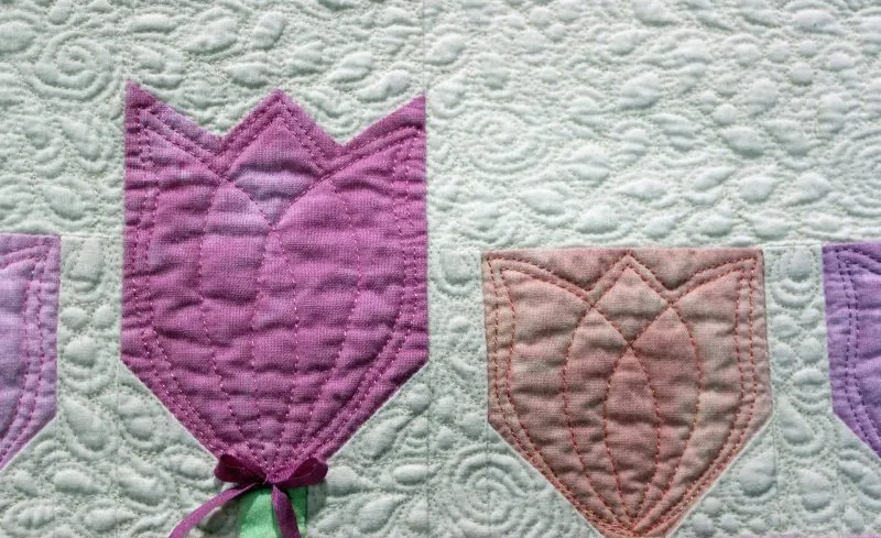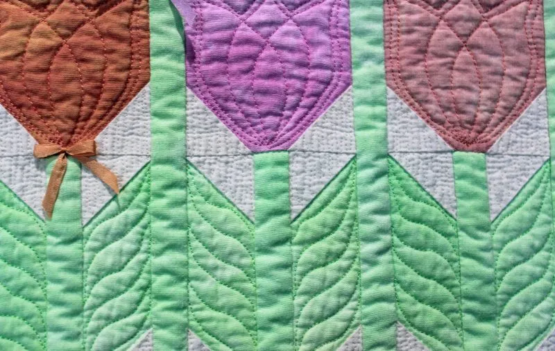 "Hello Spring" closeup; pieced and stationary machine quilted by Madeleine Trainor. 1st Place Small Pieced by One.