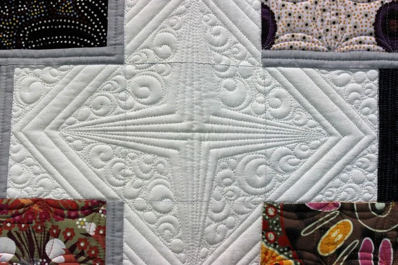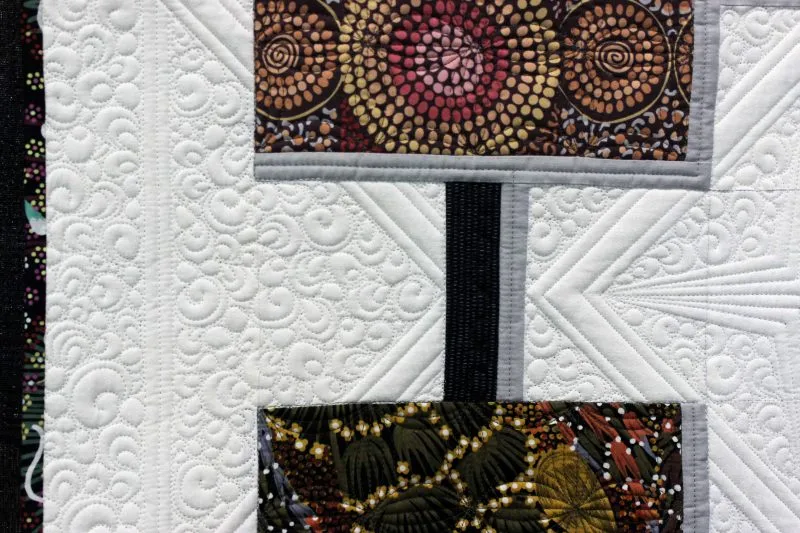 "Australia #1" close-up; pieced by Laura Newton; track machine quilted by Nancy Strickland. 1st Place Small Pieced by Two or More.