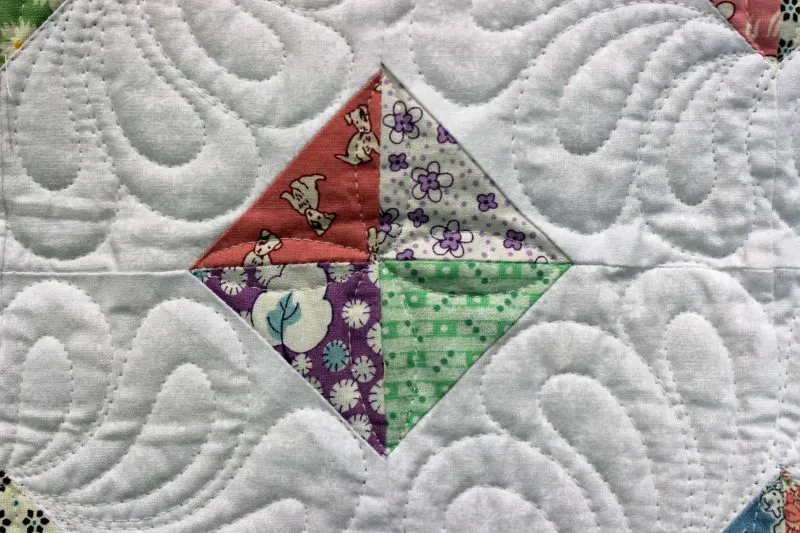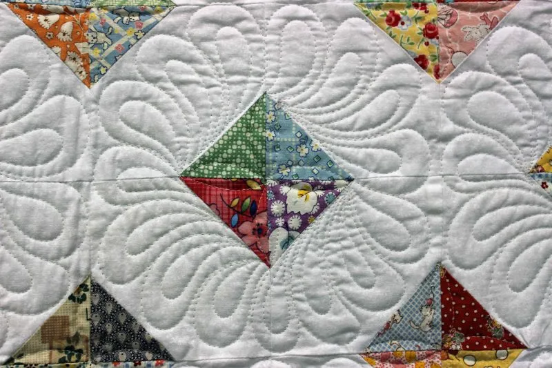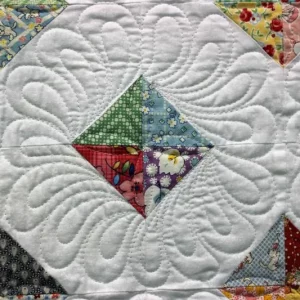 "Sweet Dreams" close-up; pieced by Kathi E. Talcott; track machine quilted by Yvette Ebaugh. 3rd place Small Pieced by Two or More