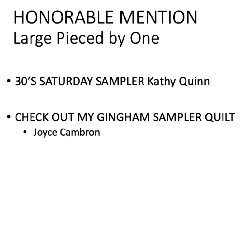 2019 Honorable Mention Large Pieced by One. Kathy Quinn and Joyce Cambron