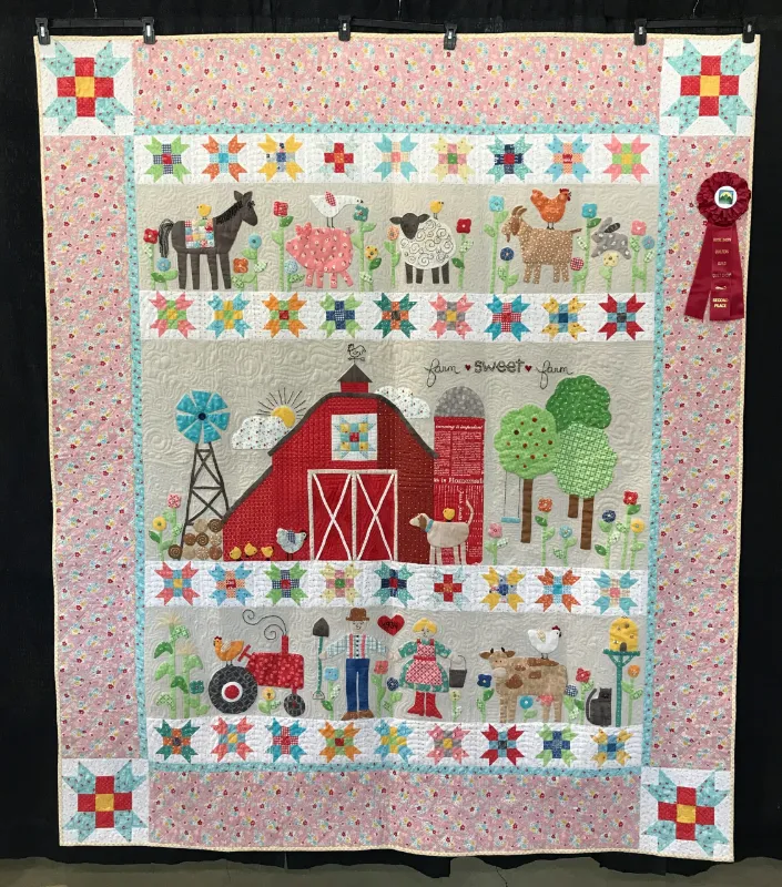 2022 SECOND PLACE-Mixed Technique by Two or More-Farm Sweet Farm-Jane Holbrook-Quilted by Pam Cope