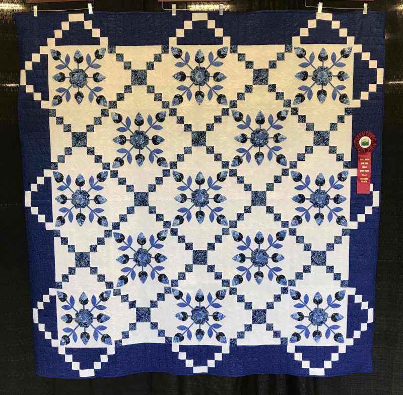 SECOND PLACE- Applique by Two or More Large-Blue and White Sheer Delight- Inez Lange-Quilted By LaRae Deats