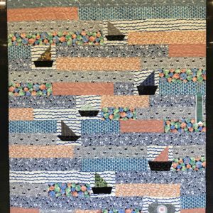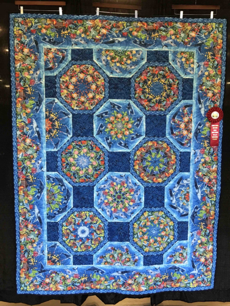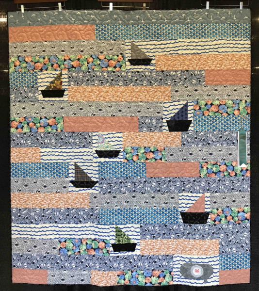 HONORABLE MENTION- Medium Pieced by Two or More-Smooth Sailing in Shark Infested Waters aka The Shark Quilt- Carolann Zografos-Quilted By Virginia Gross