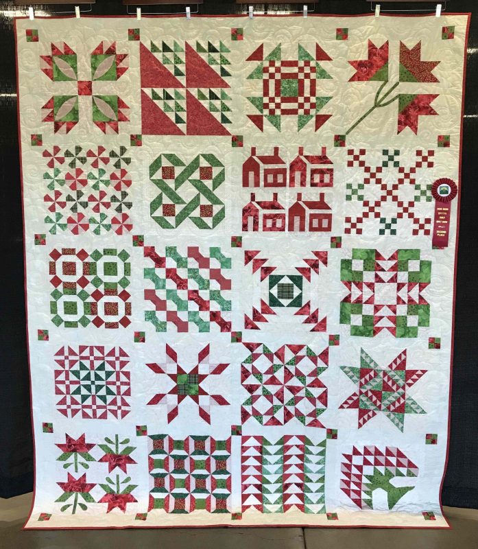 SECOND PLACE- Large Pieced by Two or More-2022 Christmas Card Quilt Happy Holidays-Cheryl Little-Quilted By My Quilting Corner