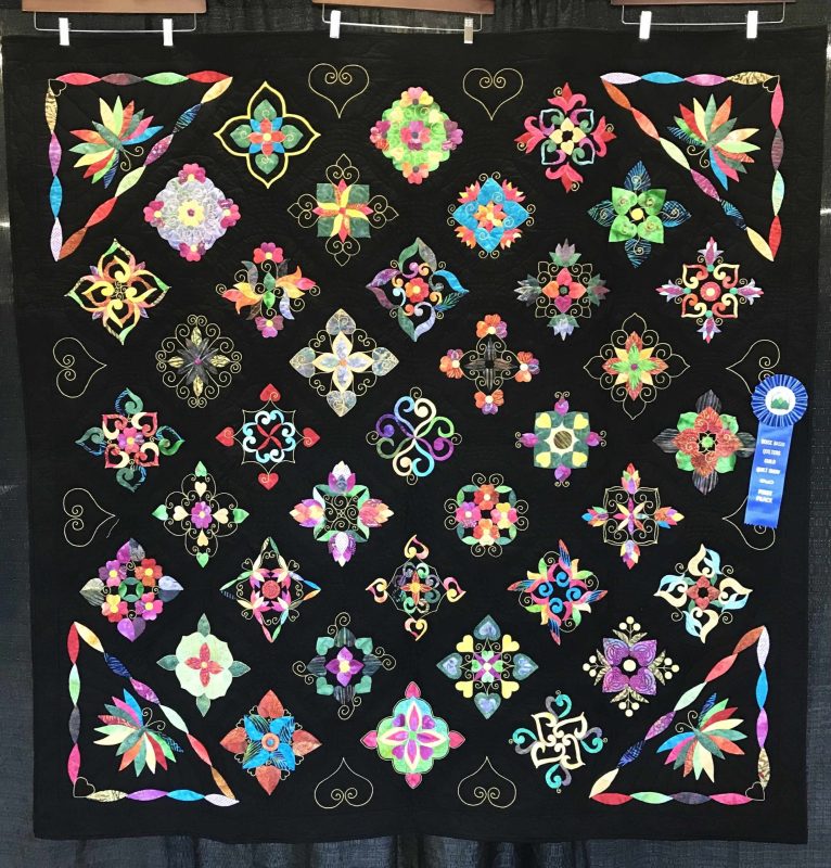FIRST PLACE- Applique by One Large - Quilted by Maker-Affairs of the Heart- Ellen Berggren-Quilted By Ellen Berggren