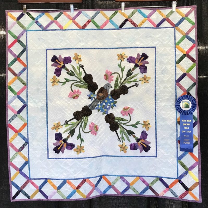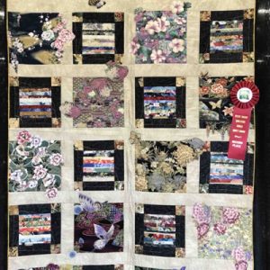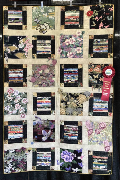 SECOND PLACE- Mixed Technique by One Small - Quilted by Maker-Oriental Flowers- Lois Johnson-Quilted By Lois Johnson