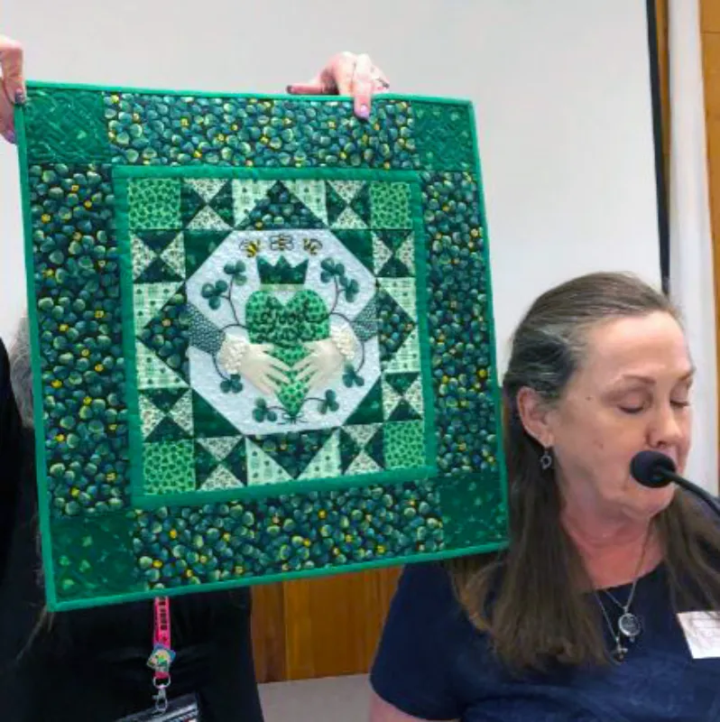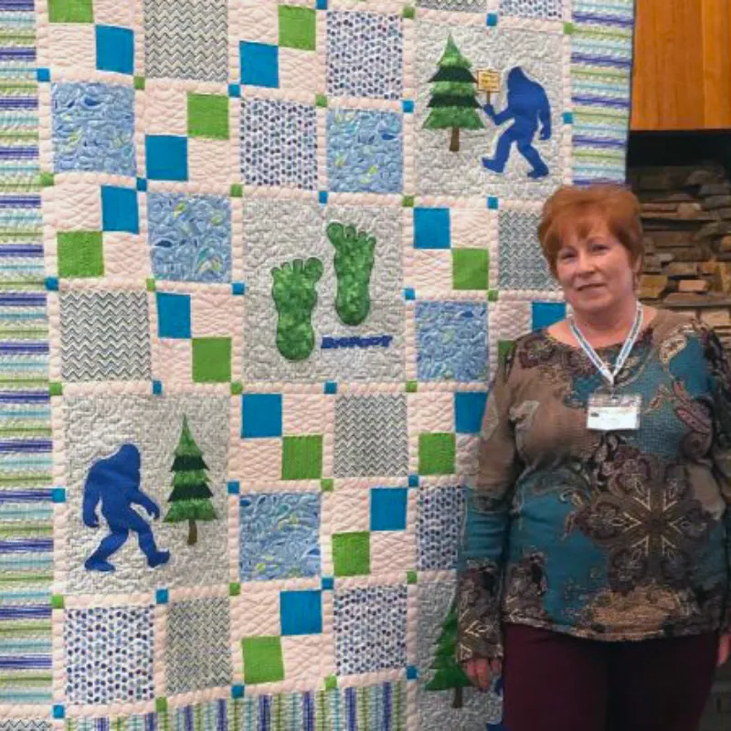Jody Zanecki made Sasquash for her son-in-law. Big foot is his mascot! She created it using clip art and then quilted it.