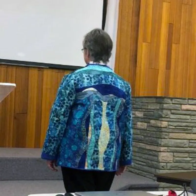 Linda Murphy quilted this improvisational jacket that was made for her. The "pattern" is by Karen Eckmeier.
