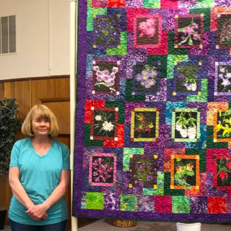 Janet Moats designed the fabric for her "Montana Wildflowers" quilt using her photographs and Adobe Photoshop. Then she uploaded to Spoonflower to be printed on ultra cotton fabric. Six family members have placed orders for this quilt!