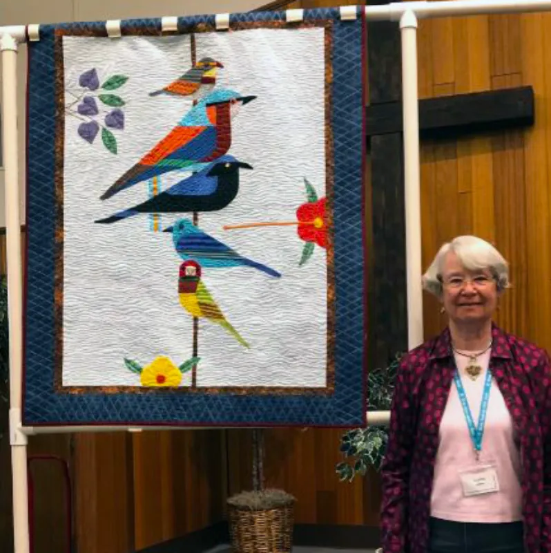 Rainforest Birds by Louise Maley was made from a pattern by Charlie Harper. He is an artist who paints birds as well as creates quilt patterns.