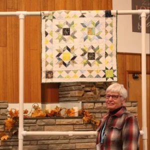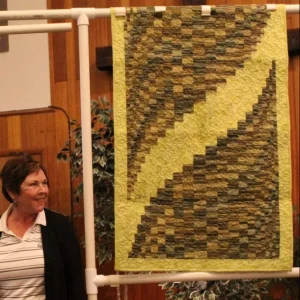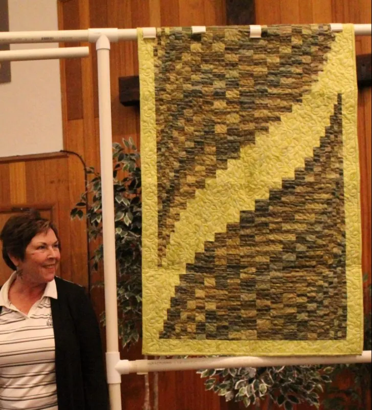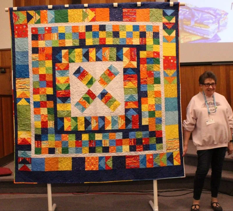 Super Simple Layer Cakes made by Aleida Houdyshell. Aleida had 2-10-inch layer cake fabric squares and used a pattern she purchased at Quilt Expressions.