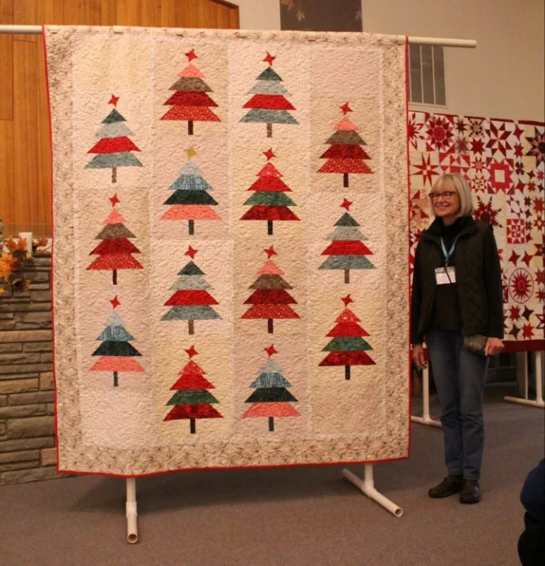 Happy Tree by Jan Lundine. This was the result of a paper-piecing class at Quilt crossing and will be displayed at the Eagle Christmas Show.