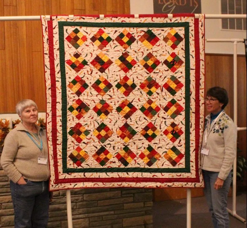 A Chili Christmas by Carol Bearce and Nancy England. These were blocks purchased at this year's Quilt Show auction. This will be used as a raffle quilt at our church's rundraiser.