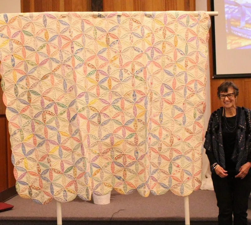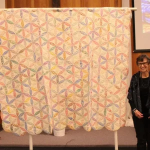 Dresden Sunday by Sandi Lockhart. This quilt was made from scraps and was hand appliquéd and hand quilted.
