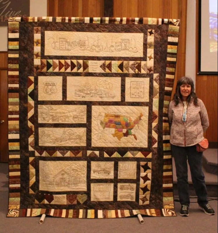 "Our RV Journey" by Kim Strouse. Kim hand-embroidered these blocks to commemorate their RV "trip of a lifetime" last year.