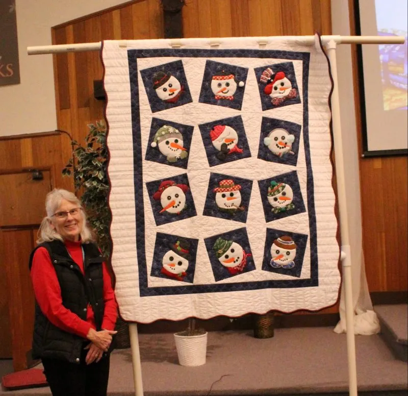 Merry Men by Eileen Wardle. My grand-daughter, Raynea, designed the snowman and I used her sketches to applique' the blocks.