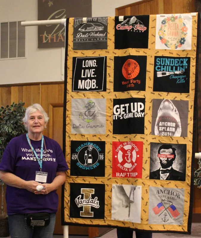 Deb Smith made this T-shirt quilt in a class at Quilt Crossing. She made the Idaho Vandal quilt for her niece.