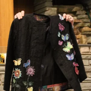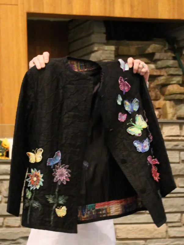 "Butterflies" made & quilted by Janet Fishman, a Hoffman challenge finalist. Jacket traveled for 12 months and exhibited at Carnegie Museum.