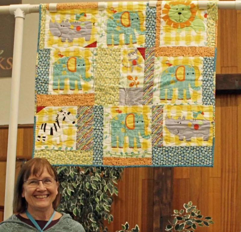 Barbara Derby made and quilted Zoo babies from a flannel panel from Quilt Expressions. A friend helped her cut it up and shared some fun fabrics.